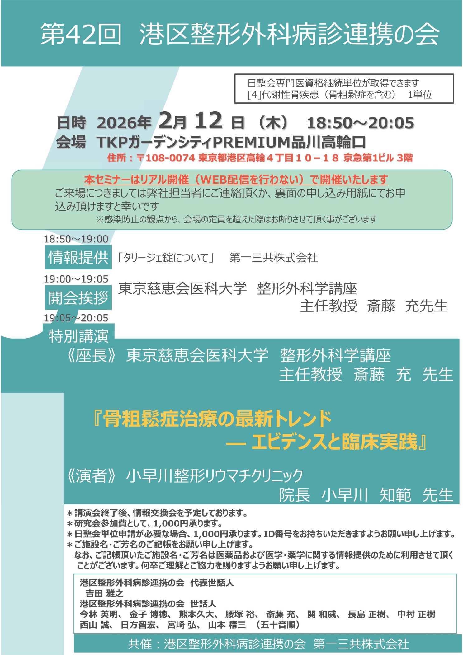 講演会「Oeteoporosis Treatment Up to Date」 ☆特別講演 演者「骨粗鬆症治療の最新トレンドーエビデンスと臨床実践」