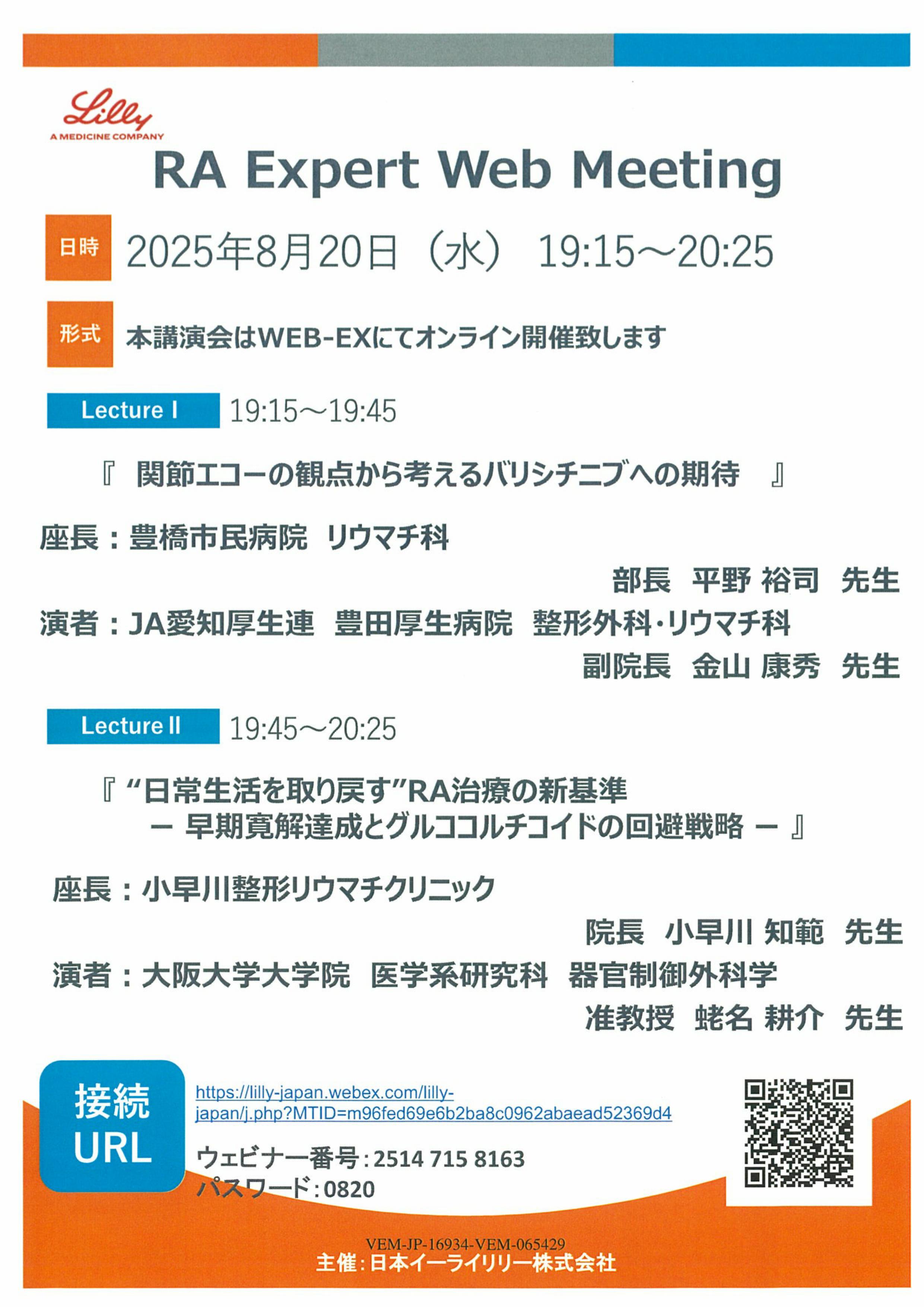 Web講演会「RA Expert Web Meeting」 小早川院長 ☆演者『”日常生活を取り戻す” RA治療の新基準~早期寛解達成とグルココルチコイドの回避戦略~』